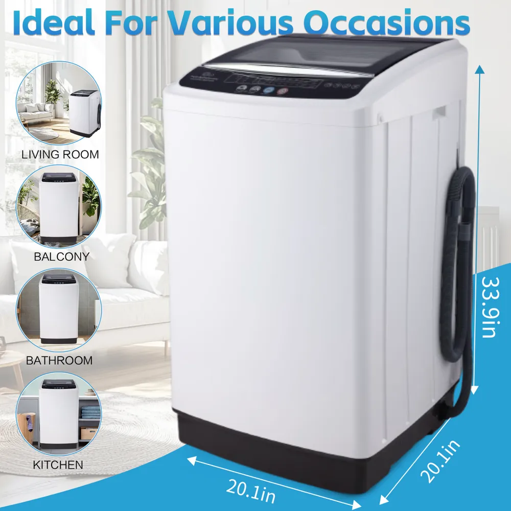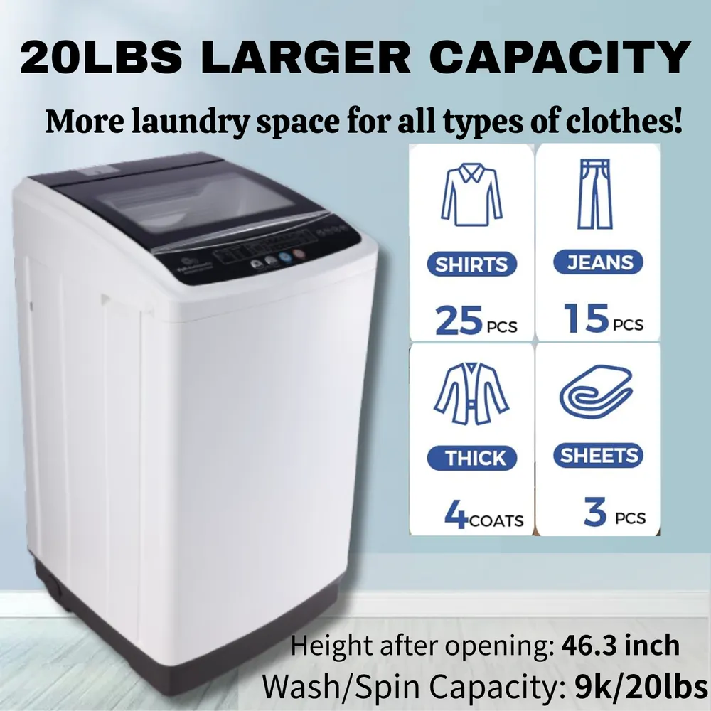 Due to lack of brand specificity, the exact build quality and durability details remain unclear. The 20Lbs capacity may be limiting for very large households or heavy-duty washing requirements. Absence of advanced technology features such as smart connectivity or sensor-based wash adjustments may restrict user convenience. The design may not include noise reduction technology, which can lead to higher operational noise levels. Replacement parts and accessories might be difficult to source due to unbranded status. Lack of detailed documentation or support can present challenges in troubleshooting and maintenance.
